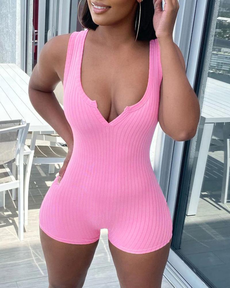 Scarf Chain Print Cutout Sleeveless Skinny Romper