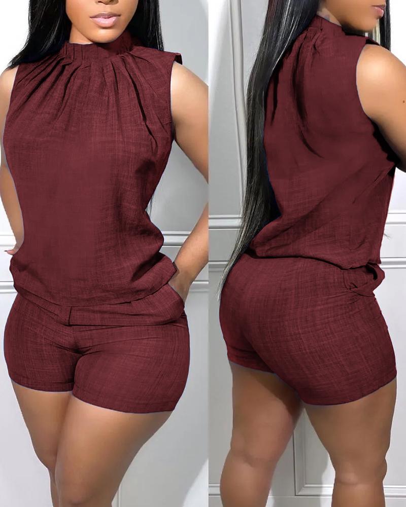Ruched Sleeveless Tank Top & Pocket Design Shorts Set