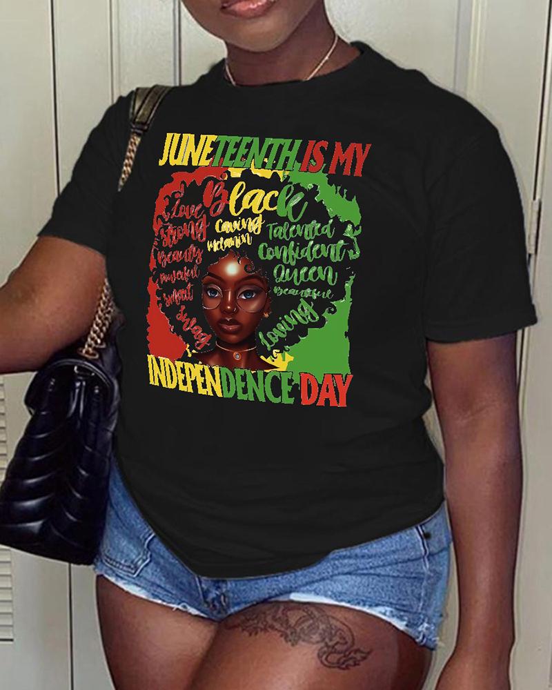 Juneteenth Is My Independence Day Figure Letter Print Crew Neck T-shirt