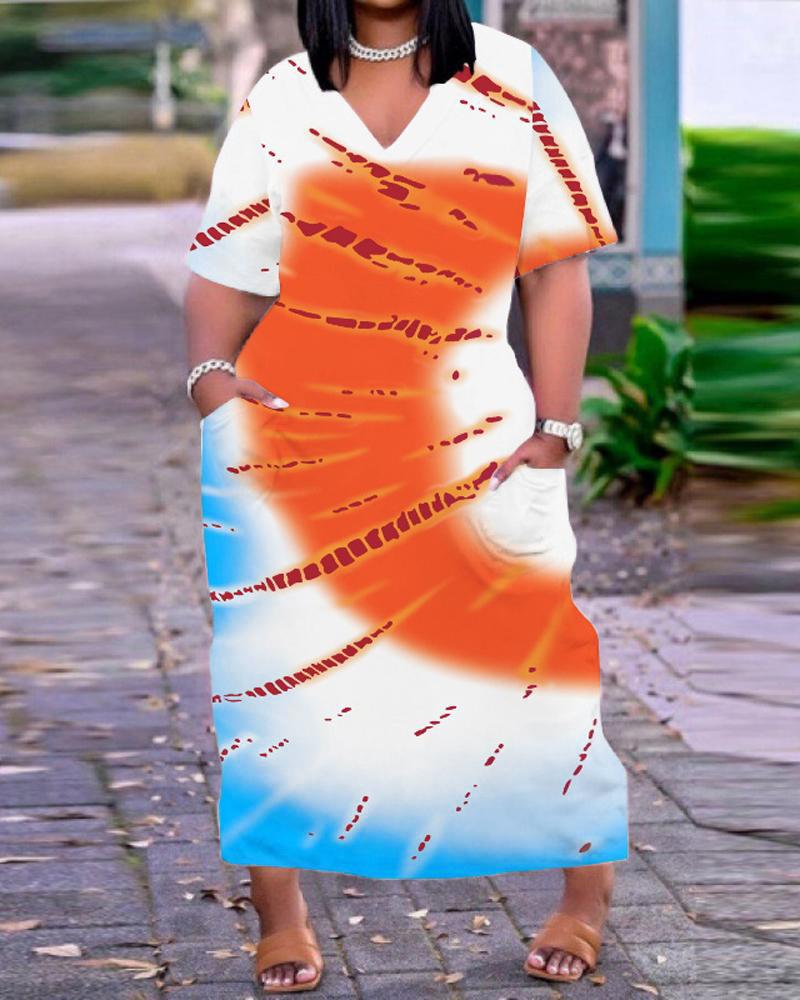Style:Basics,Casual Type:Straight,Tee Material:95%Polyester,5%Elastane Neckline:V-Neck Sleeve Style:Short Sleeve Length:Maxi Pattern Type:Tie Dye Decoration:Pocket Fit Type:Oversized Occasion:Daily Package Include:1* Dress Fabric Elasticity:Slight Stretch Sheer:No Care Instructions:Machine wash or professional dry clean