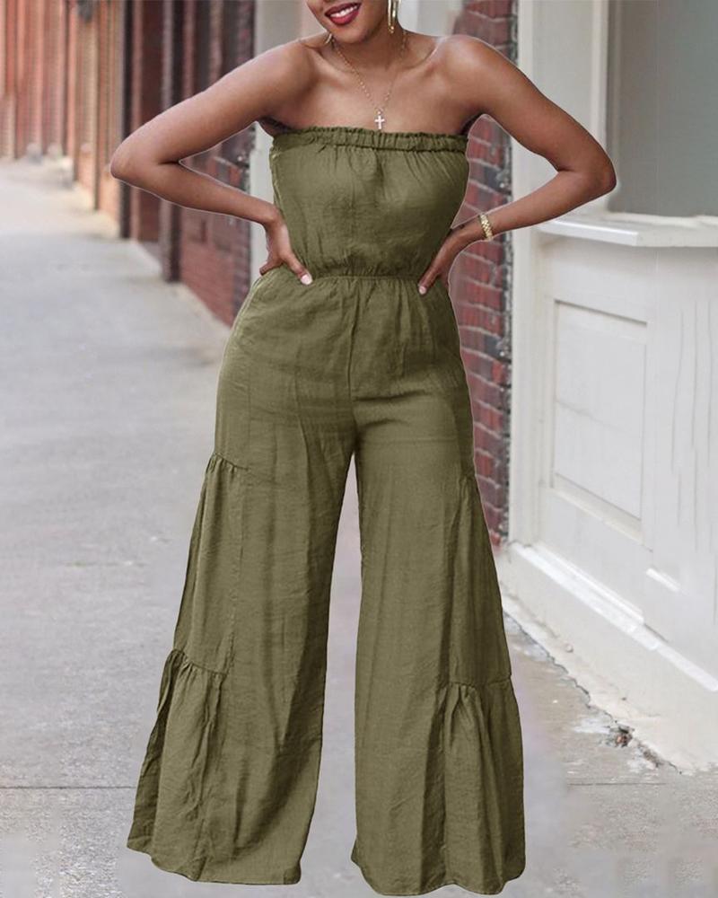 Style:Chic,Casual Type:Jumpsuit Material:100%Cotton Neckline:Bandeau Sleeve Style:Sleeveless Length:Long Pattern Type:Plain Decoration:Ruched Fit Type:Regular Occasion:Daily Package Include:1*Jumpsuit Fabric Elasticity:Slight Stretch Sheer:No Care Instructions:Machine wash or professional dry clean Waist Line:High Waist
