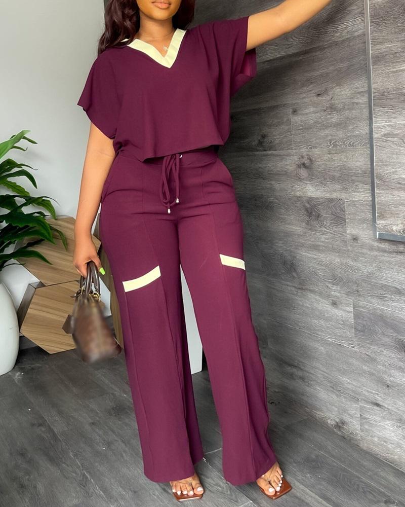 Contrast Paneled Crop T-shirt & High Waist Pants Set