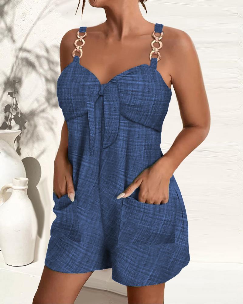 Style:Casual Type:Romper Material:Polyester Neckline:Sweetheart Neck Sleeve Style:Sleeveless Length:Above Knee Pattern Type:Plain Decoration:Chain,Tied Detail Fit Type:Regular Occasion:Daily Package Include:1*Romper Fabric Elasticity:Slight Stretch Sheer:No Care Instructions:Machine wash or professional dry clean