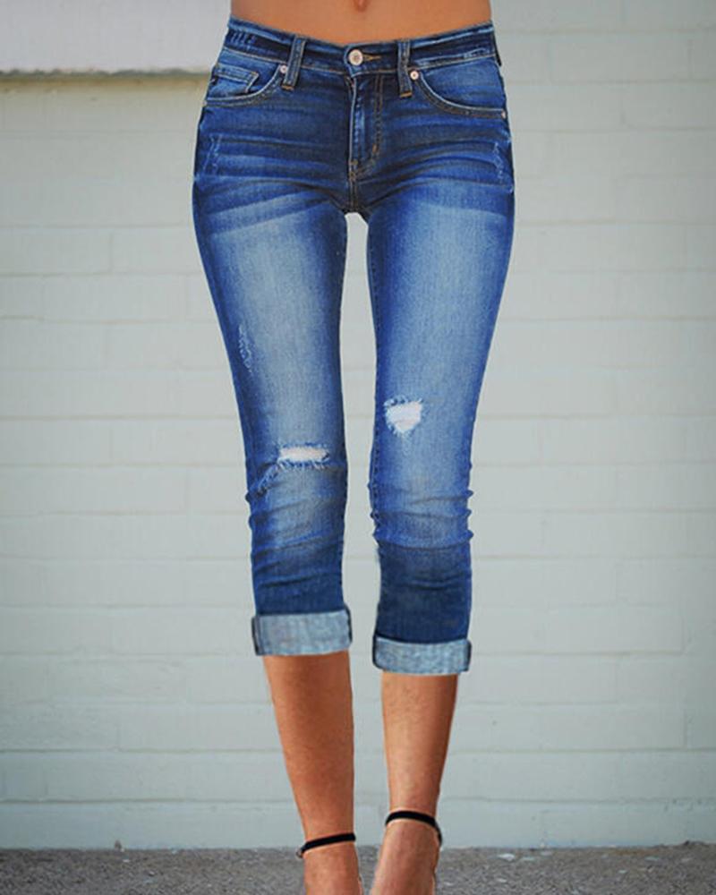 Zipper Fly Cutout Ripped Raw Hem Skinny Jeans