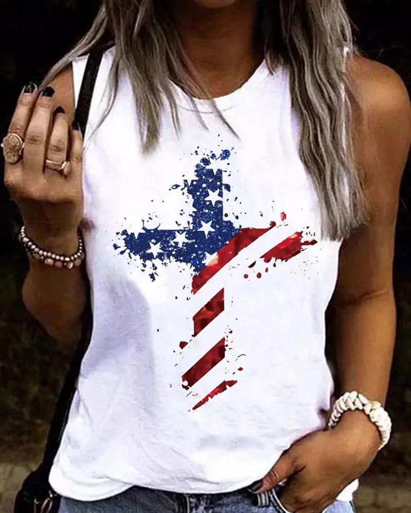 Independence Day Flag Print Round Neck Tank Top