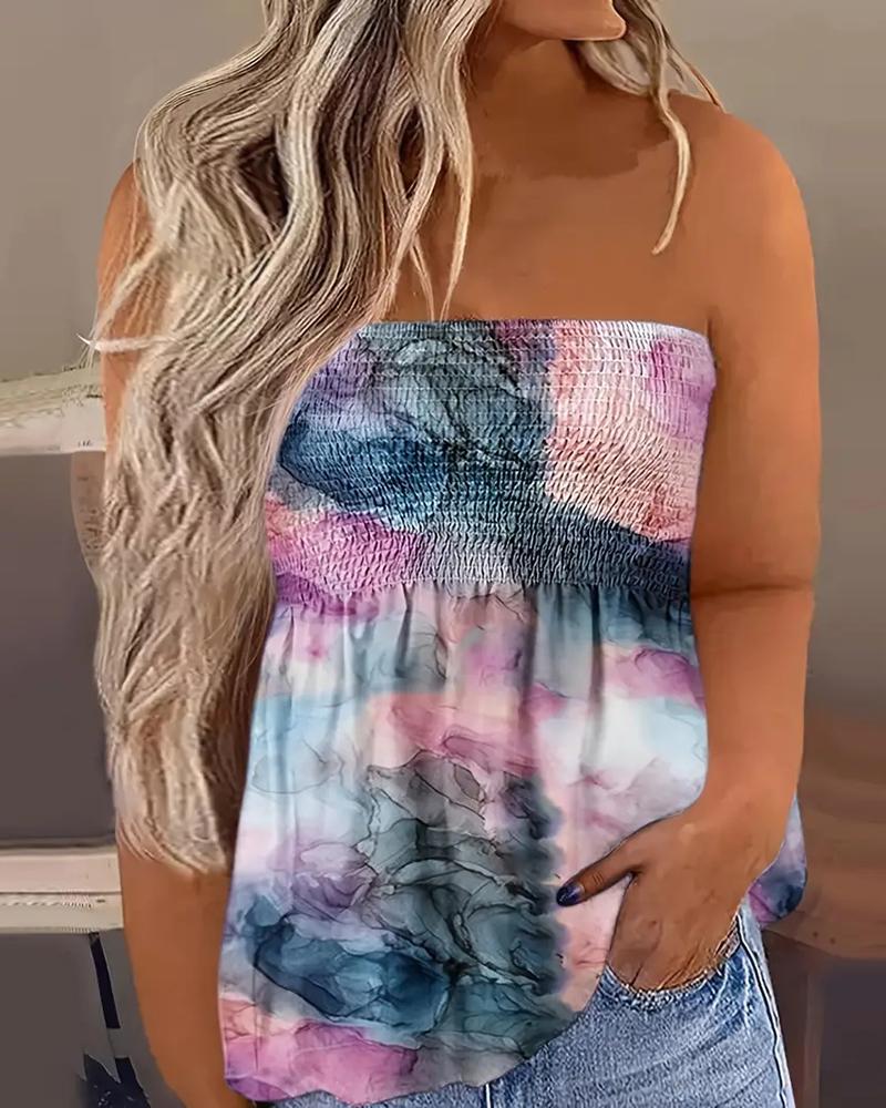 Style:Chic Type:Tank Material:Polyester Neckline:Bandeau Sleeve Style:Sleeveless Length:Regular Pattern Type:Marble Decoration:Ruched,Shirred Fit Type:Regular Occasion:Daily,Vacation Package Include:1*Top Fabric Elasticity:Slight Stretch Sheer:No Care Instructions:Machine wash or professional dry clean
