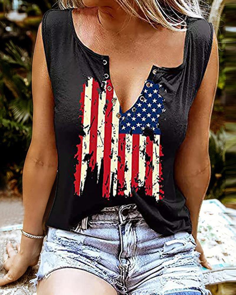 Independence Day Flag Print Notch Neck Tank Top