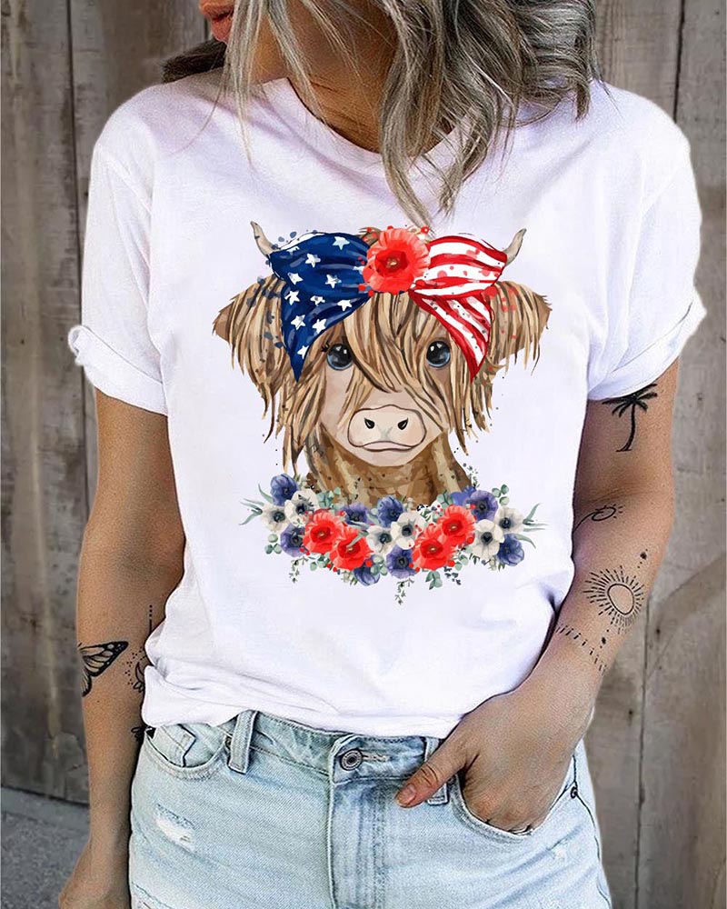 Style:Casual Type:Regular Material:Polyester Neckline:Round Neck Sleeve Style:Short Sleeve Length:Regular Pattern Type:Flag,Animal Decoration:Others Fit Type:Regular Occasion:Daily Package Include:1*T-Shirt Fabric Elasticity:Slight Stretch Sheer:No Care Instructions:Machine wash or professional dry clean