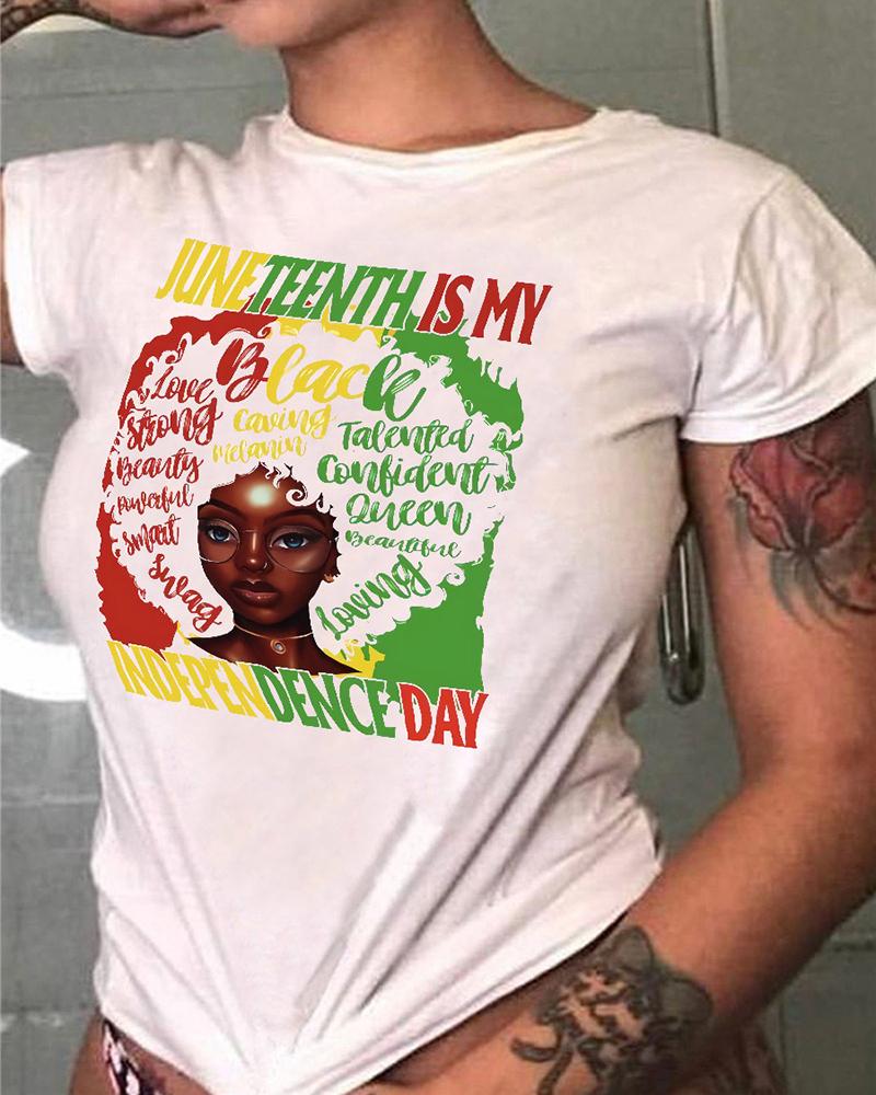 Juneteenth Is My Independence Day Figure Letter Print Crew Neck T-shirt