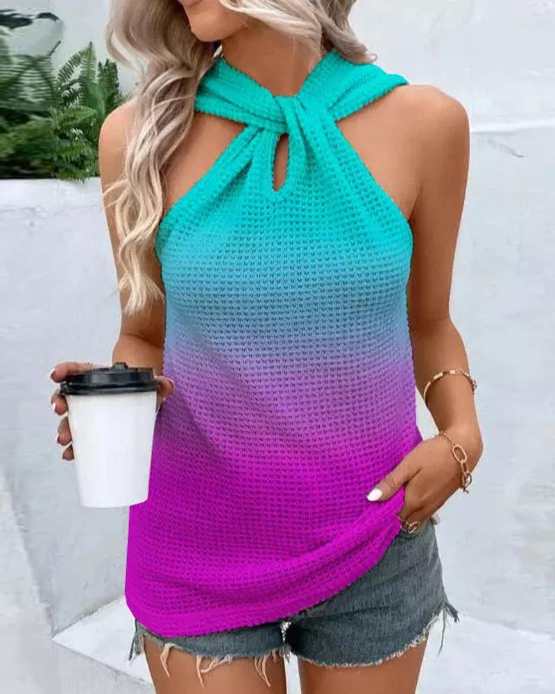 Style:Casual Type:Tank Material:95%Polyester,5%Silicone Neckline:Asymmetrical Neck Sleeve Style:Sleeveless Length:Regular Pattern Type:Ombre,Tie Dye Decoration:Cutout Fit Type:Regular Occasion:Daily Package Include:1*Top Fabric Elasticity:High Stretch Sheer:No Care Instructions:Machine wash or professional dry clean