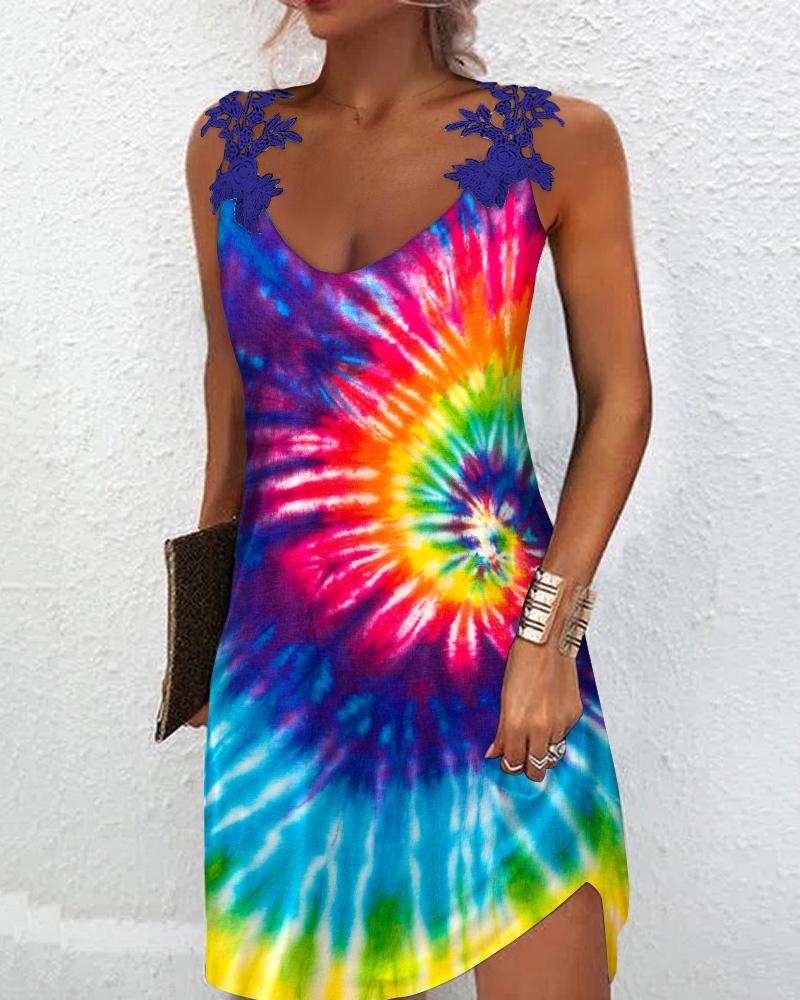 Tie Dye Print Contrast Lace Sleeveless Casual Dress