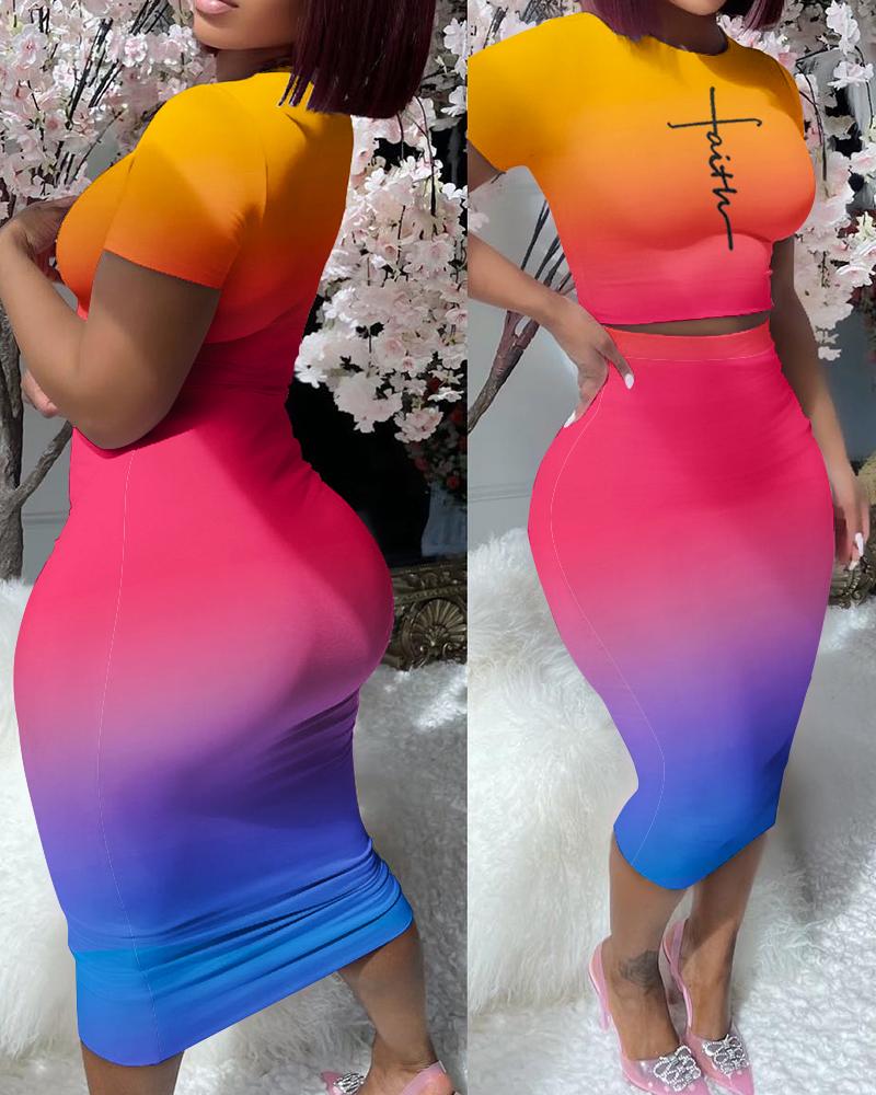 Faith Print Ombre Top & High Waist Skirt Set