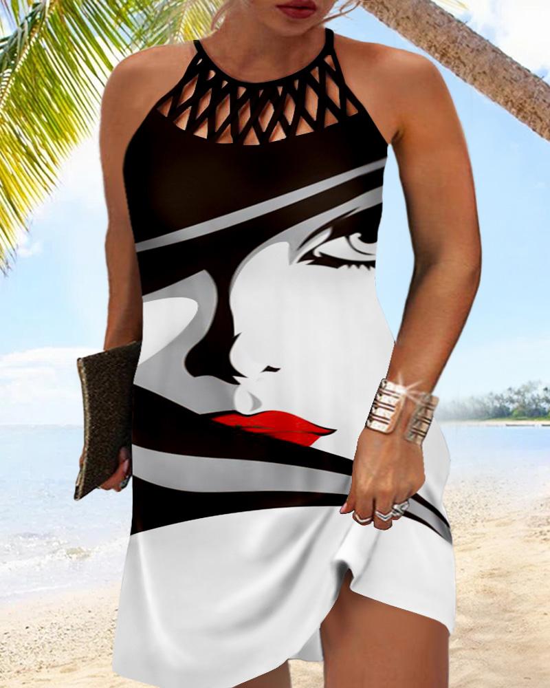 Style:Casual Type:Straight Material:Polyester Neckline:O-neck Sleeve Style:Sleeveless Length:Mini Pattern Type:Figure Decoration:Hollow-out Fit Type:Regular Occasion:Daily Package Include:1* Dress