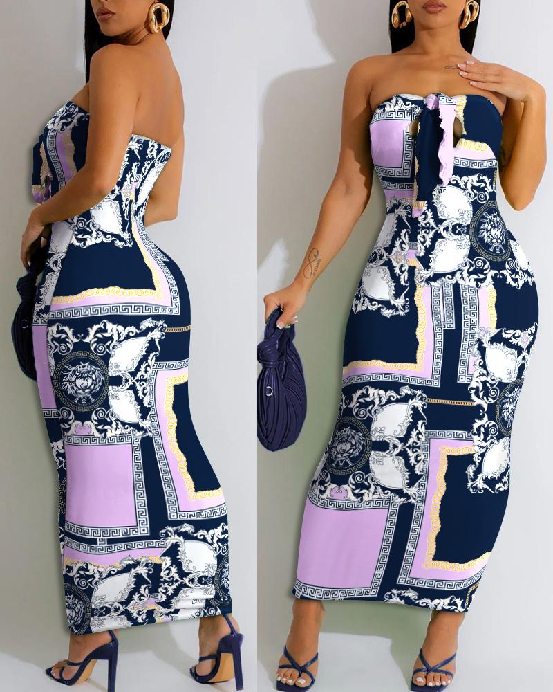 Style:Chic Type:Straight Material:Polyester Neckline:Bandeau Sleeve Style:Sleeveless Length:Maxi Pattern Type:Scarf Decoration:Tied Detail Fit Type:Skinny Occasion:Daily Package Include:1* Dress Fabric Elasticity:Non-Stretch