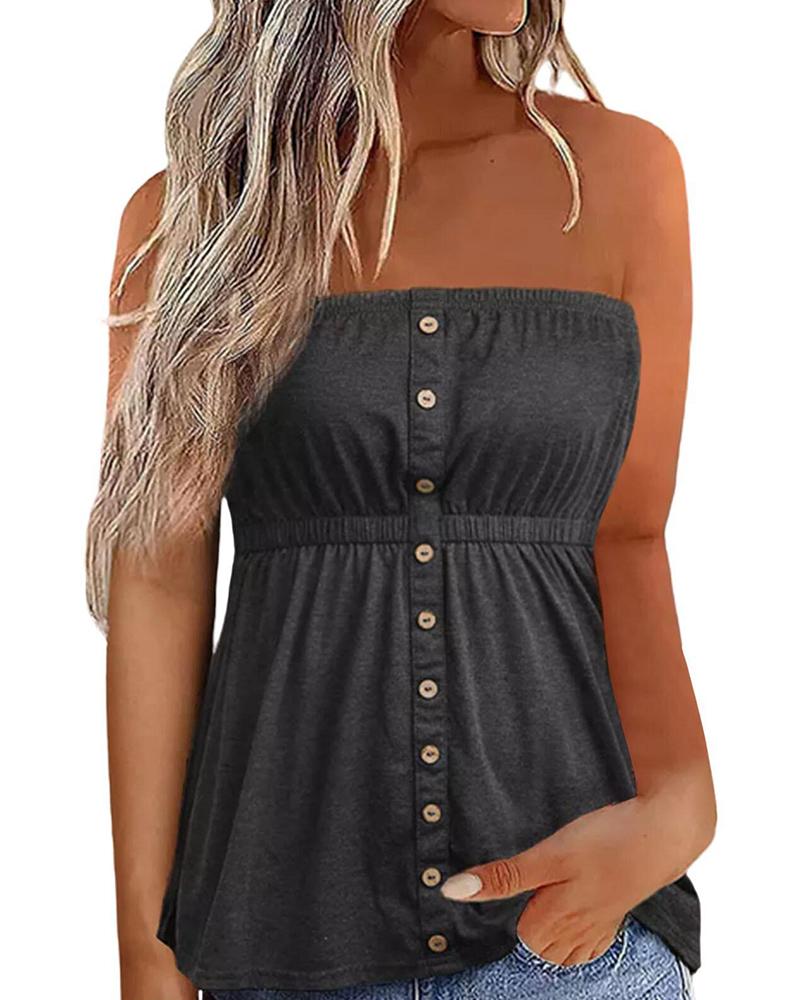 Style:Casual Type:Tank Material:Polyester Neckline:Bandeau Sleeve Style:Sleeveless Length:Regular Pattern Type:Plain Decoration:Button Fit Type:Regular Occasion:Daily Package Include:1*Top Fabric Elasticity:Slight Stretch Sheer:No Care Instructions:Machine wash or professional dry clean