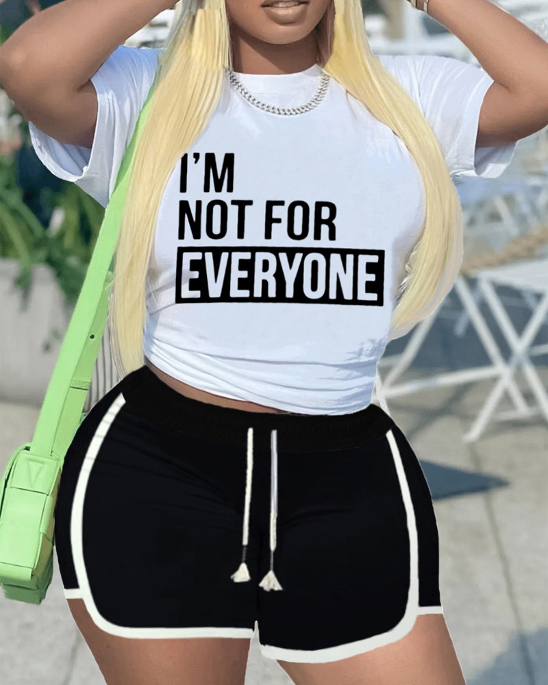 Style:Casual Type:Shorts Set Material:Polyester Neckline:O-neck Sleeve Style:Short Sleeve Length:Above Knee Pattern Type:Letter,Contrast Paneled Decoration:Drawstring Fit Type:Regular Occasion:Daily Package Include:1*Shorts Set Fabric Elasticity:Slight Stretch Sheer:No Care Instructions:Machine wash or professional dry clean