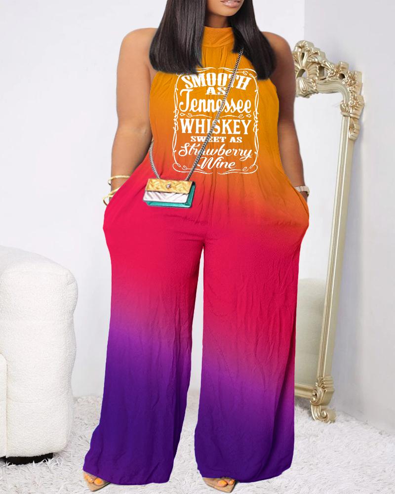 Style:Casual Type:Jumpsuit Material:100%Polyester Neckline:Mock Neck Sleeve Style:Sleeveless Length:Long Pattern Type:Slogan,Ombre Decoration:Pocket Fit Type:Regular Occasion:Daily Package Include:1*Jumpsuit Fabric Elasticity:Slight Stretch Sheer:No Care Instructions:Machine wash or professional dry clean