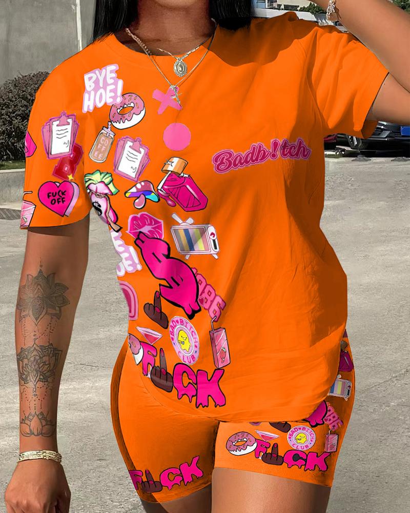 Style:Chic Type:Shorts Set Material:Polyester Neckline:Round Neck Sleeve Style:Short Sleeve Length:Above Knee Pattern Type:Graphic,Letter Decoration:Others Fit Type:Regular Occasion:Daily Package Include:1*Shorts Set Fabric Elasticity:Slight Stretch