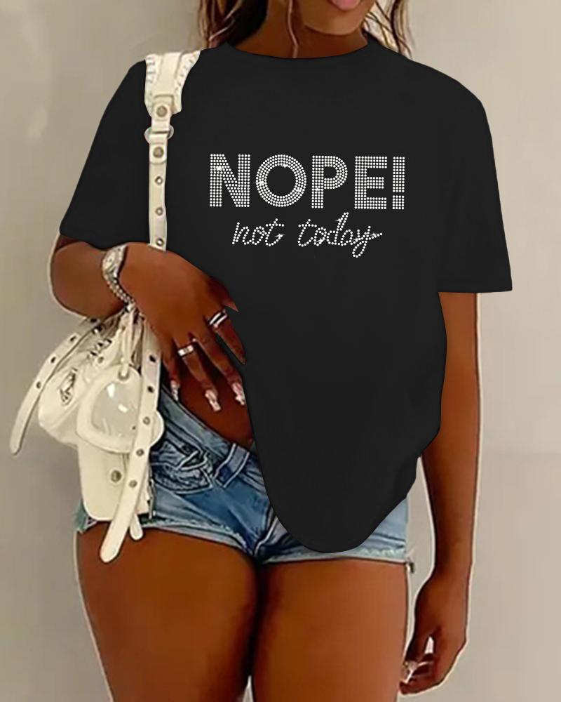 Rhinestone Nope Not Today Pattern Crew Neck Top
