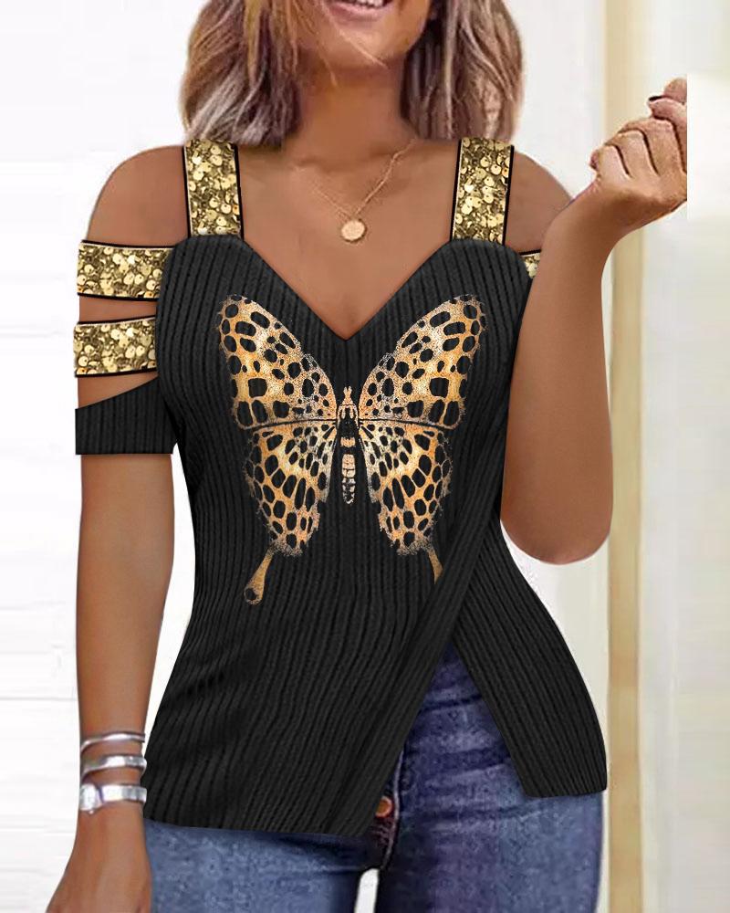 Style:Casual Type:Tee Material:Polyester Neckline:Cold Shoulder Sleeve Style:Short Sleeve Length:Regular Pattern Type:Butterfly Decoration:Cutout Fit Type:Skinny Occasion:Daily Package Include:1*T-Shirt Fabric Elasticity:Slight Stretch Sheer:No Care Instructions:Machine wash or professional dry clean