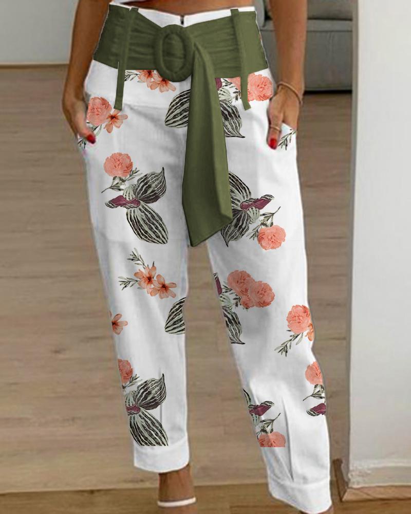 Style:Casual Type:High Waist Material:100%Polyester Length:Long Pattern Type:Tropical Decoration:Pocket Fit Type:Regular With Belt:Yes Occasion:Daily Package Include:1*Pants(With Belt) Fabric Elasticity:Slight Stretch Sheer:No Care Instructions:Machine wash or professional dry clean Waist Line:High Waist