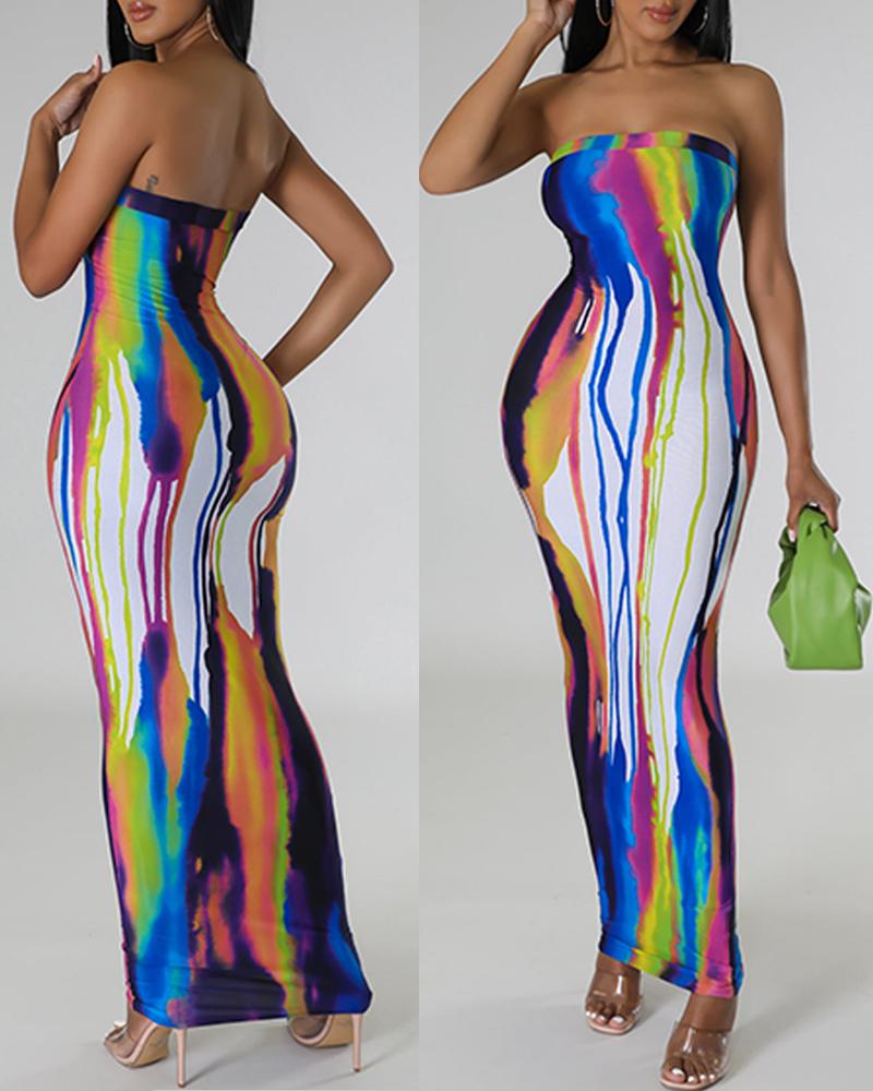Style:Chic,Sexy Type:Straight Material:Polyester Neckline:Bandeau Sleeve Style:Sleeveless Length:Maxi Pattern Type:Ink Splash,Tie Dye,Tropical Decoration:Others Fit Type:Skinny Occasion:Night Out,Vacation Package Include:1* Dress Fabric Elasticity:Slight Stretch Sheer:No Care Instructions:Machine wash or professional dry clean Waist Line:Natural