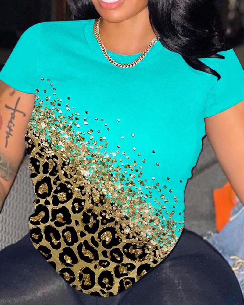 Style:Chic Type:Regular Material:95%Polyester,5%Spandex Neckline:O-neck Sleeve Style:Short Sleeve Length:Regular Pattern Type:Leopard Decoration:Others Fit Type:Regular Occasion:Daily Package Include:1*T-Shirt Fabric Elasticity:Non-Stretch Sheer:No Care Instructions:Machine wash or professional dry clean