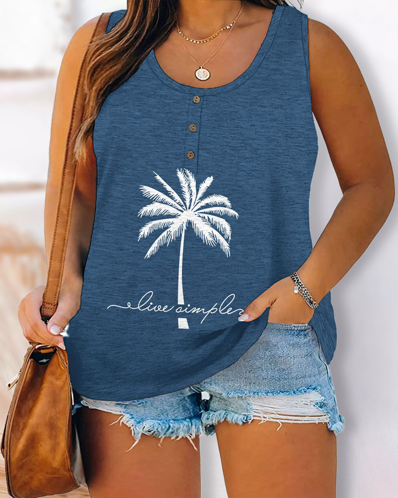 Plus Size Coconut Tree Slogan Print U-Neck Sleeveless Top