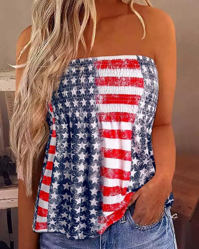 Style:Chic Type:Tank Material:Polyester Neckline:Bandeau Sleeve Style:Sleeveless Length:Regular Pattern Type:Flag Decoration:Ruched,Shirred Fit Type:Regular Occasion:Daily Package Include:1*Top Fabric Elasticity:Slight Stretch Sheer:No Care Instructions:Machine wash or professional dry clean