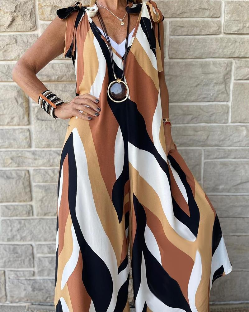 Style:Casual Type:Jumpsuit Material:Polyester Neckline:V-Neck Sleeve Style:Sleeveless Length:Long Pattern Type:Abstract Decoration:Tied Detail Fit Type:Regular Occasion:Daily Package Include:1*Jumpsuit Fabric Elasticity:Slight Stretch Sheer:No Care Instructions:Machine wash or professional dry clean