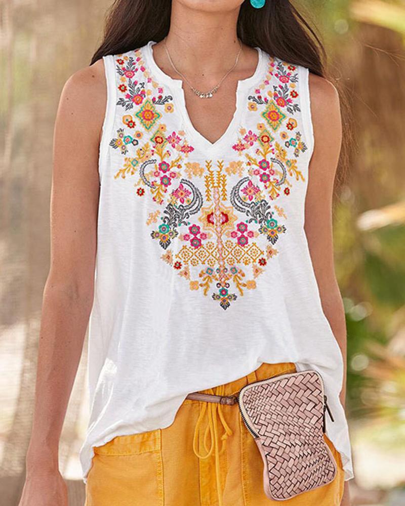 Style:Vintage,Casual Type:Tank Material:Polyester Neckline:Notch Neck Sleeve Style:Sleeveless Length:Regular Pattern Type:Tribal Fit Type:Regular Occasion:Beach,Daily,Vacation Package Include:1*Top