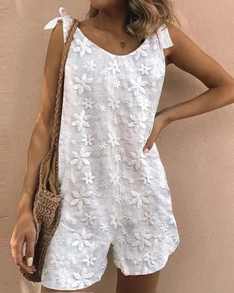 Embroidery Floral Tied Detail Casual Romper