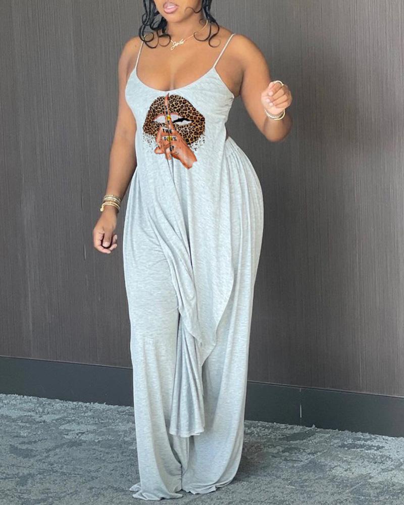 Style:Chic Type:Pants Sets Material:95%Polyester,5%Elastane Neckline:U-Neck Sleeve Style:Spaghetti Strap Length:Asymmetrical Pattern Type:Leopard,Letter,Lip,Slogan Fit Type:Regular Occasion:Daily Package Include:Pants Set