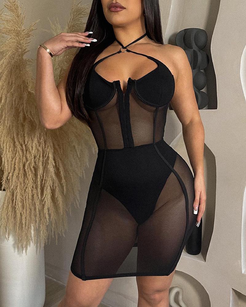 Sheer Mesh Halter Bodycon Dress