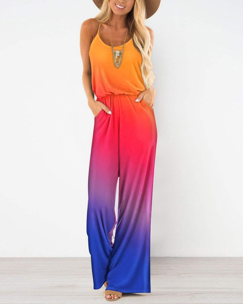 Ombre Spaghetti Strap Pocket Design Jumpsuit