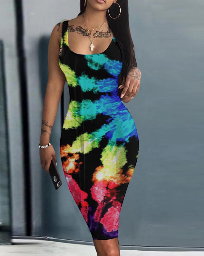 Tie Dye Print Sleeveless U-Neck Skims Dress