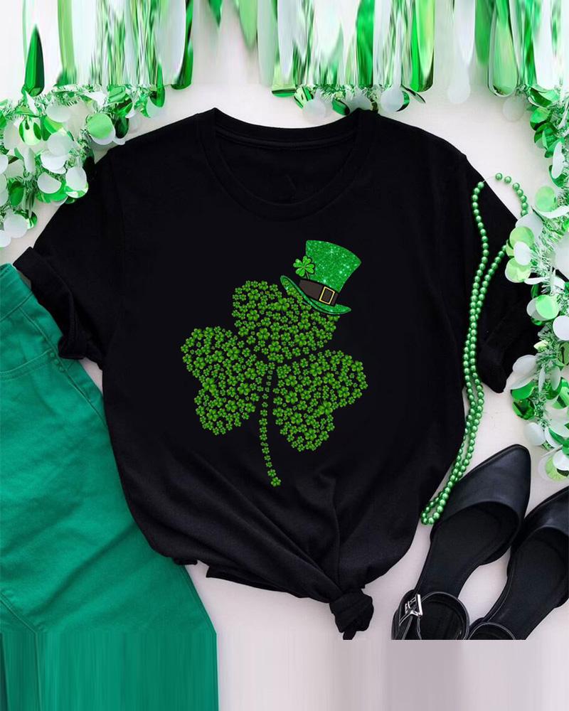 Plus Size St. Patrick's Day Lucky Shamrock Print Casual T-shirt