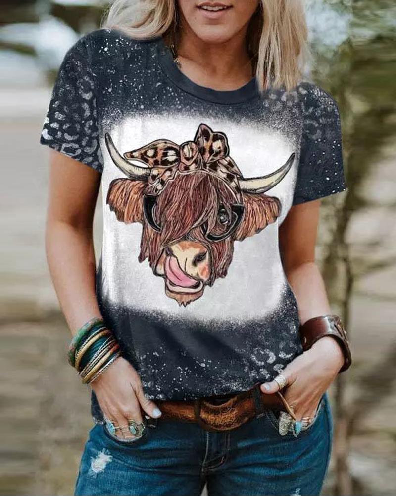 Figure Letter Print Short Sleeve Casual T-shirt