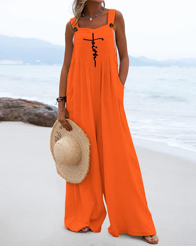 Style:Casual Type:Jumpsuit,Wide Leg Material:Cotton Blends Neckline:Square Neck Sleeve Style:Thick Strap Length:Long Pattern Type:Letter Decoration:Button,Pocket Fit Type:Oversized Occasion:Daily,Vacation Package Include:1*Jumpsuit