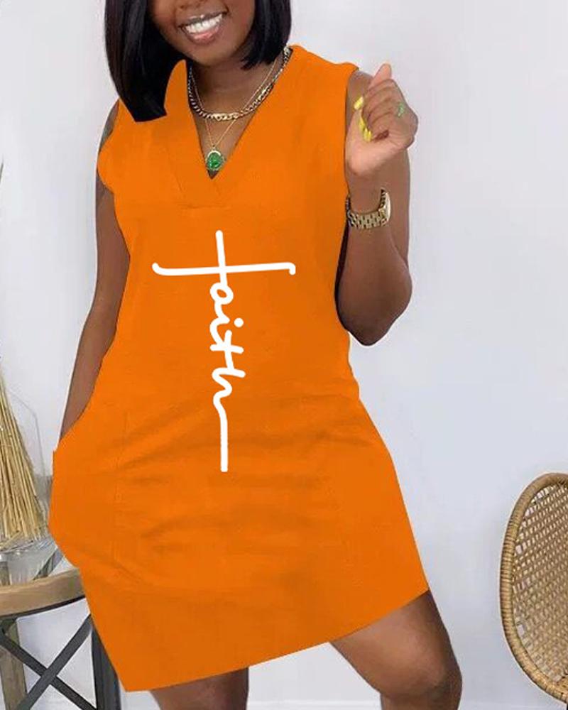 Faith Print Pocket Detail Sleeveless Casual Dress