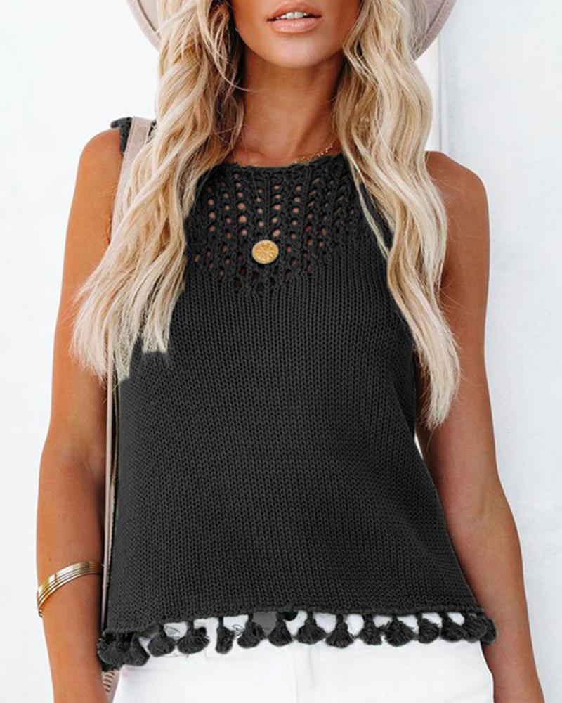Style:Chic Type:Tank Material:Acrylic Neckline:Round Neck Sleeve Style:Sleeveless Length:Regular Pattern Type:Plain Decoration:Hollow-out,Tassel Fit Type:Regular Occasion:Beach,Daily,Vacation Package Include:1*Top