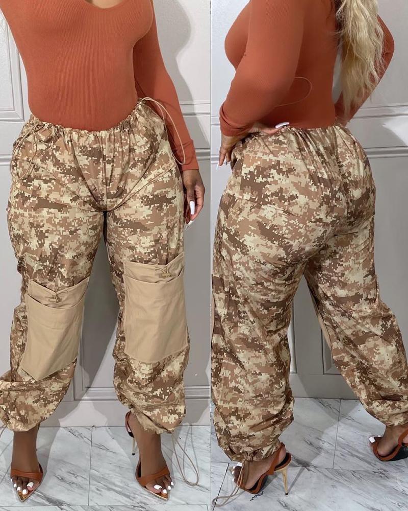 Camouflage Print Pocket Design Drawstring Cargo Pants