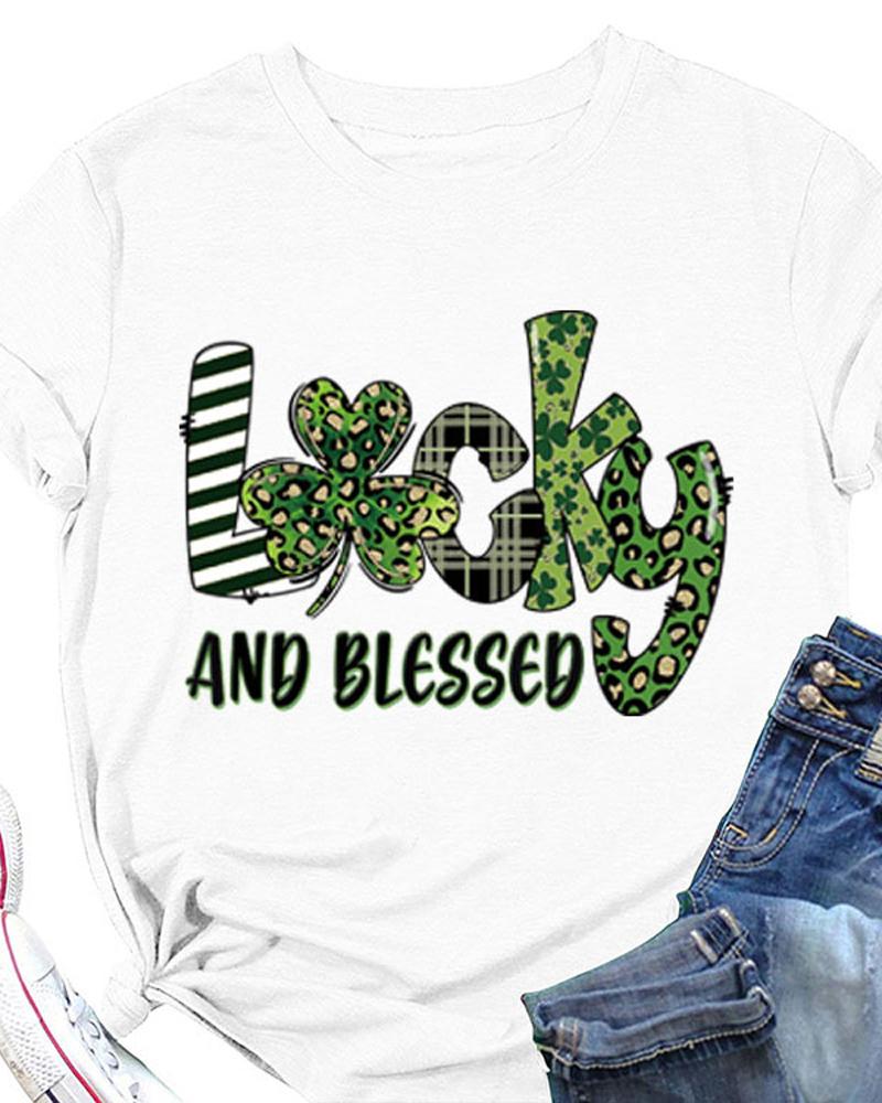 St. Patrick's Day Letter Clover Print Casual T-shirt