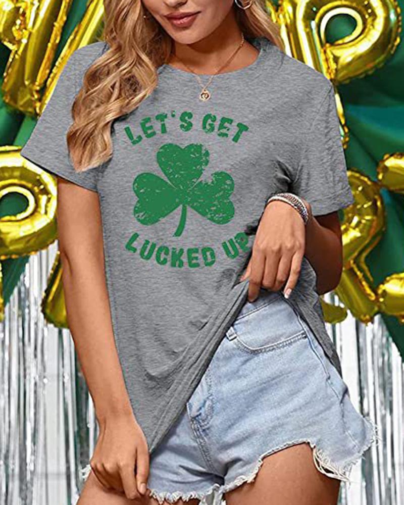 St. Patrick's Day Lucky Clover Print Round Neck Casual T-shirt