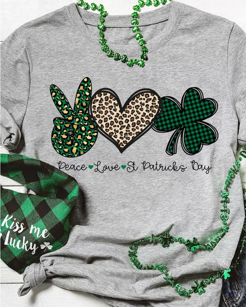 St. Patrick's Day Lucky Shamrock Heart Print Casual T-shirt