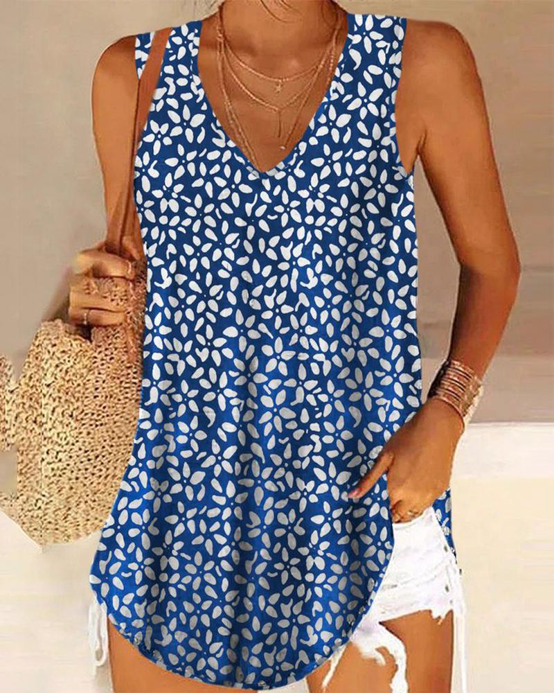 Floral Print V-Neck Casual Tank Top