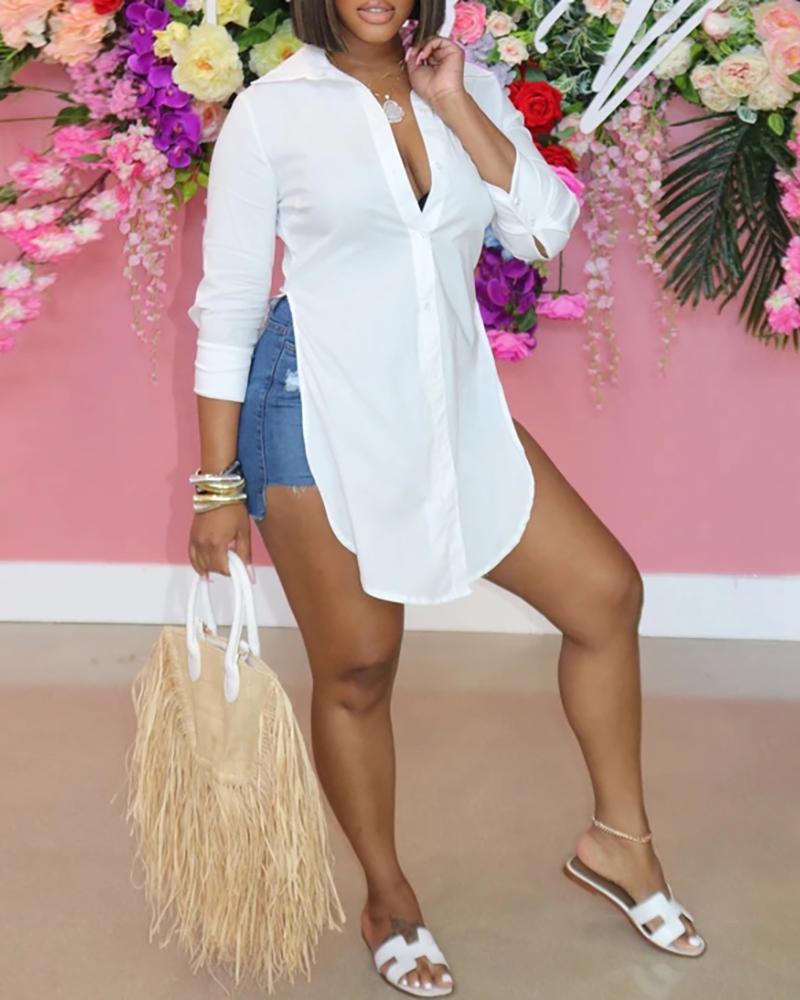 Style:Casual Type:Shirt Material:Cotton Blends Neckline:Turn-down Collar Sleeve Style:Long Sleeve Length:Regular Pattern Type:Plain Decoration:Button,Slit Fit Type:Regular Occasion:Daily Package Include:1*Shirt