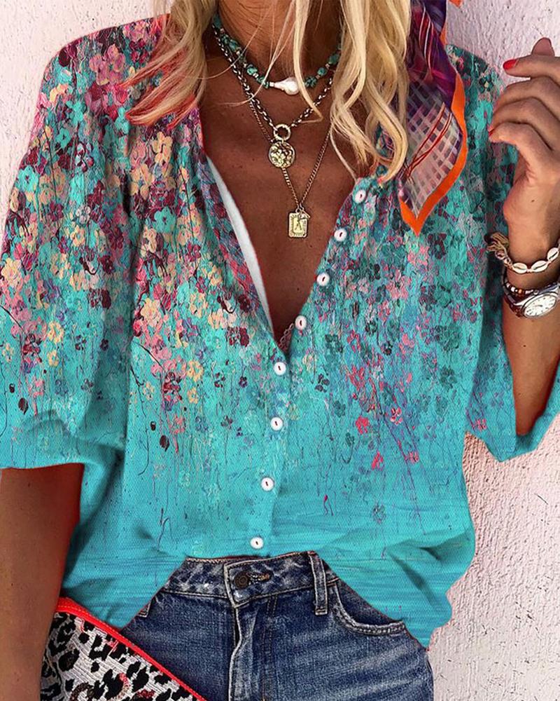 Floral Print Ruffle Hem Beaded Split Sleeve Top