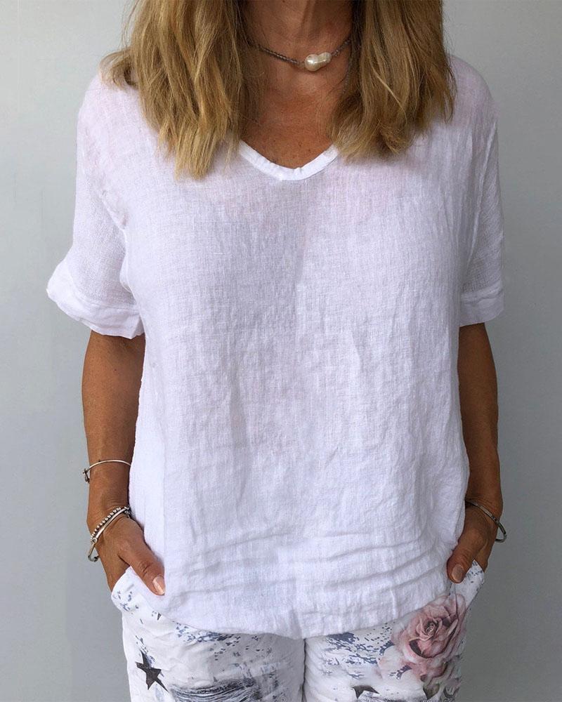 Style:Basics,Casual Type:Regular Material:Polyester Neckline:V-Neck Sleeve Style:Short Sleeve Length:Regular Pattern Type:Plain Fit Type:Regular Occasion:Daily Package Include:1*T-Shirt