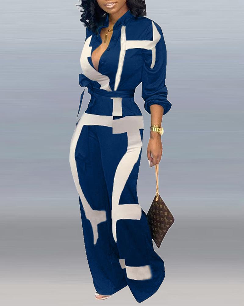 Style:Casual,Elegant Type:Jumpsuit Material:Polyester Neckline:Stand Collar Sleeve Style:Long Sleeve Length:Long Pattern Type:Abstract Decoration:Button,Pocket,Tied Detail Fit Type:Regular With Belt:Yes Occasion:Daily,Work Package Include:1*Jumpsuit (With Belt) Fabric Elasticity:Non-Stretch Sheer:No Care Instructions:Machine wash or professional dry clean